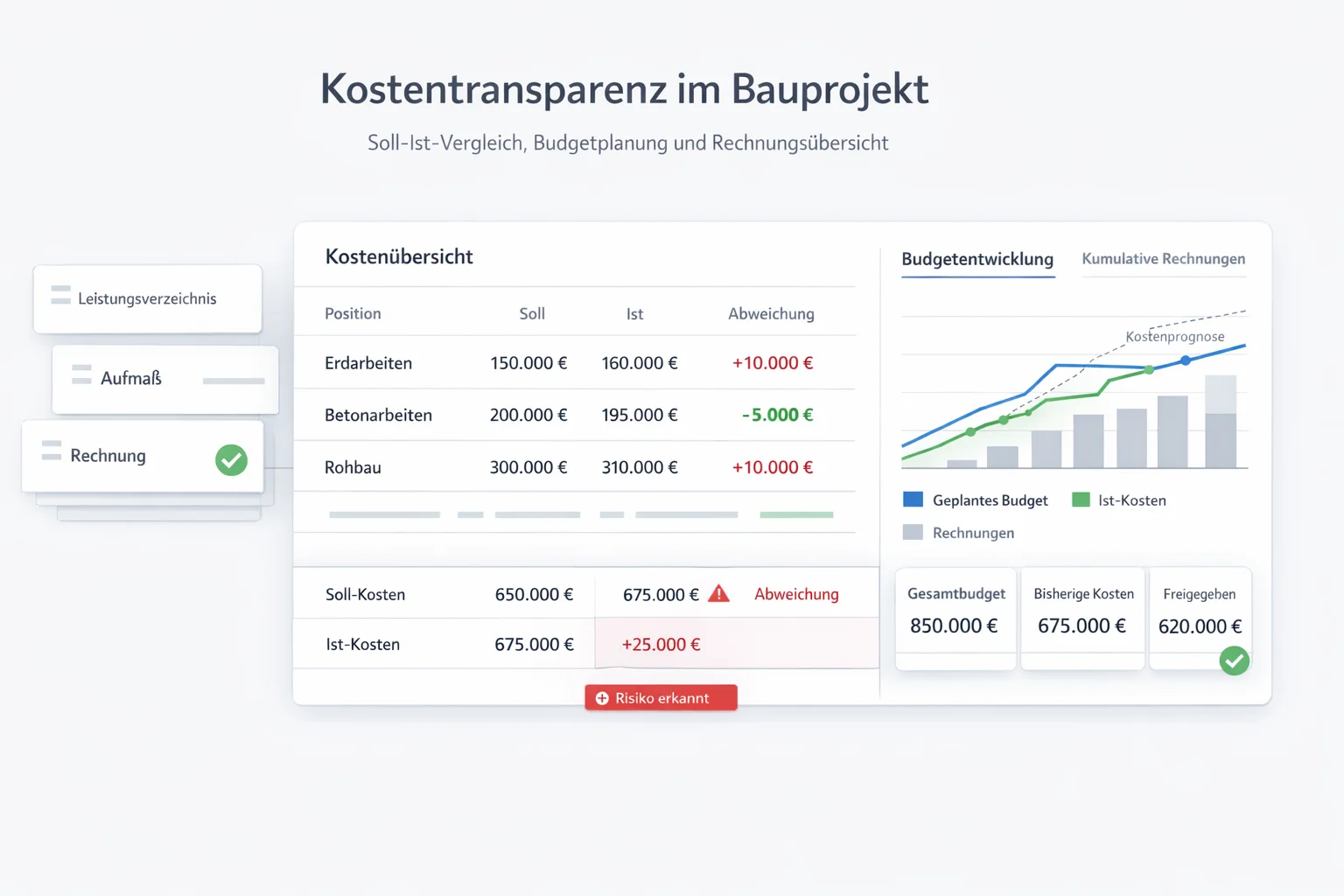 • Geprüfte Soll-Ist-Vergleiche pro Rechnung